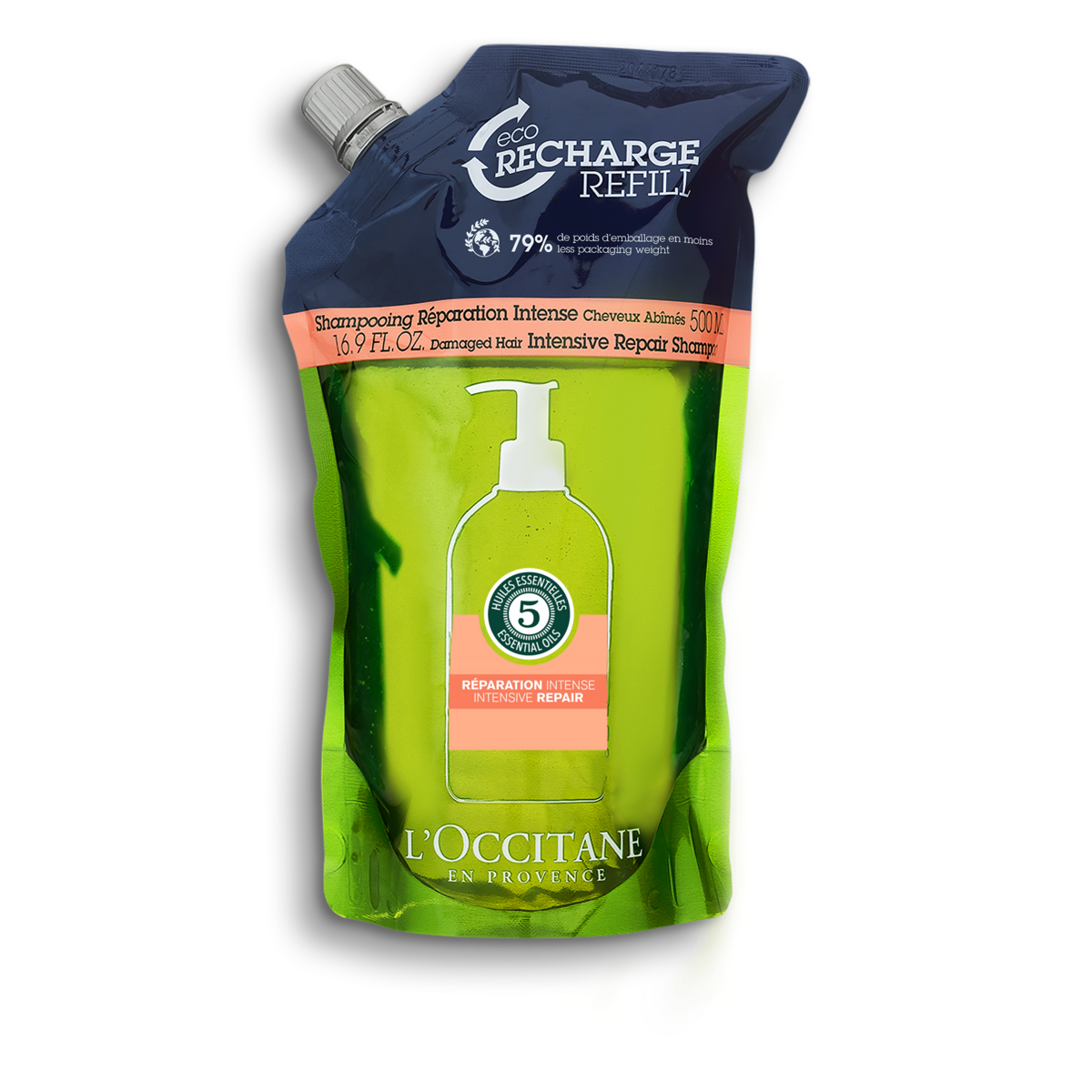 L'OCCITANE Intensive Repair Shampoo Eco-Refill 500ml.รีฟิลแชมพูสูตรปราศจากซิลิโคนที่ช่วยซ่อมแซมและเสริมสร้างความแข็งแรงให้กับเส้นผมที่แห้งเสีย แตกปลาย และถูกทำลาย ฟื้นฟูไฟเบอร์เส้นผมให้แข็งแรงตั้งแต่รากผมจดปลาย ช่วยให้ผมนุ่มลื่นเป็นประกาย มีชีวิตชีวา ,