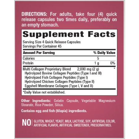 Piping Rock Multi Collagen Protein 2000 mg 180 Capsules นำเข้าจากอเมริกา ของแท้ 100% แพคเกจใหม่